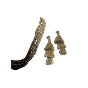Multi-strand Gold Metallic Necklace with Two Pair Matching Earrings