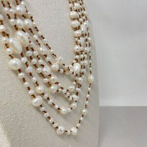 Multistrand Pearl String Necklace Boho Coastal Classic