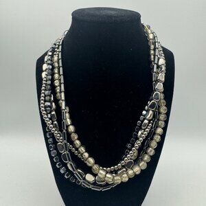Multistrand Silver Beaded Statement Necklace Adjustable Sterling .925 Tag 16-18