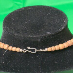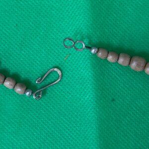 This necklace effortlessly combines natural wood beads and sleek Horn-like accents, creating a harmonious blend of rustic charm and modern design. The multistrand layout adds depth and texture, catching the eye with its intricate details. Its versatile aesthetic complements both casual and formal attire, offering a timeless and earthy elegance.