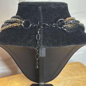 Multistrand statement collar necklace Multi tone metallic chain 18-21”