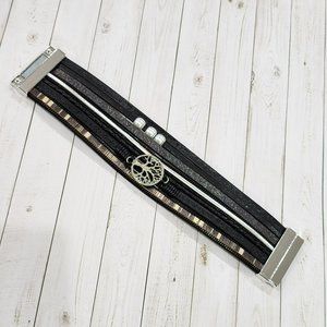 Multy Layers Leather Bangle Magnetic Bracelet for Men and Women 7.5in - Black