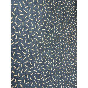 A whimsical textile that looks like confetti decided to have a party on a charcoal gray dance floor. Tiny golden matchstick-like shapes and playful pink dots scatter across the fabric, creating a design that's equal parts sophisticated and cheerful.