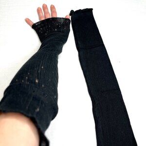 Mummy Arm Warmers Black Hole Fingerless Gloves Shredded Distressed 100% Cotton