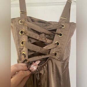 Mumu Clarissa Corset Dress in Dune Satin