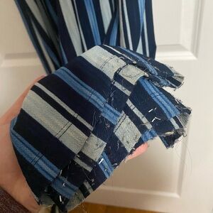 Play condition - a couple stains, piling, particularly in the crotch, around pockets, back, along bottom hem. These have never been altered so they are long, if you need them altered that would clean up the bottom hem