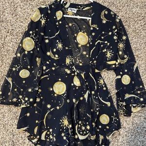 Matching set in “City of Stars” print - shorts with zippered back, tie top