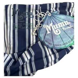 Mumu Mermaid navy blue white stripes bikini bottoms Medium NWT & charm
