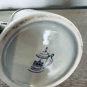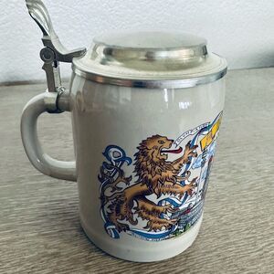 “Munchen” Germany Gerz ceramic beer stein in excellent preowned condition with ceramic silver metal hinged lid.