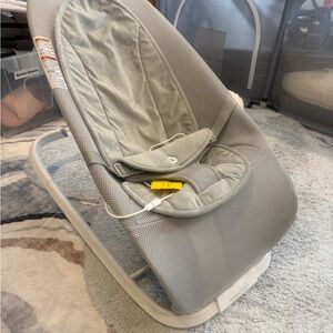 Comfortable gray baby rocker with sleek design. Automatic baby bouncer & rocker that moves on its own. Perfect for both newborns and older babies