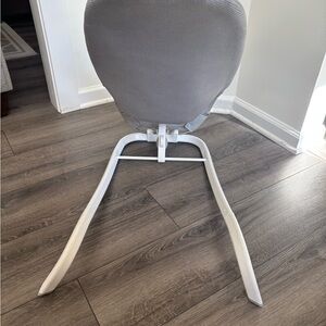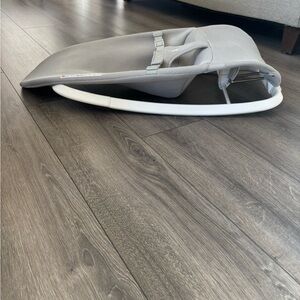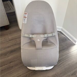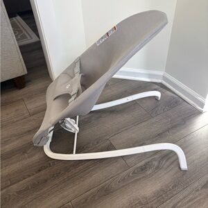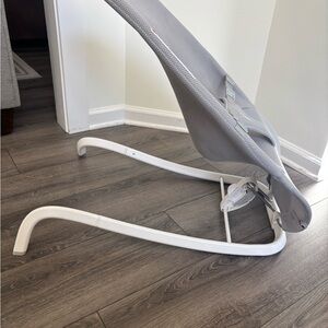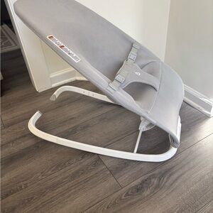 Comfortable baby bouncer with three recline positions. Lightweight and easy to use. Features a sleek gray design. Used by just one child for a very brief time. Smoke and pet free home.