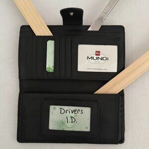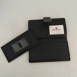 Mundi Black Genuine Leather Wallet Clutch Organizer Coin Pocket Card Slots