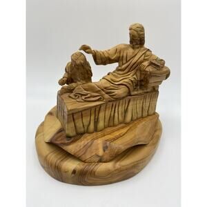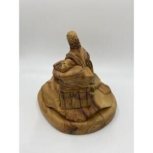 Gorgeous, hand carved olive wood statue made in Jerusalem by artist Munir Twemeh. Very substantial piece, measures about 6.5” tall, 8” wide, 7” deep.
