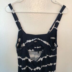 Great condition, new with tags. Munki Munki. Perfect pajamas. Sleeveless dress. Open back. Navy blue with white tie dye stripes. Size large. 57% cotton, 43% polyester. Measurements available upon request. Smoke free home. No trades, offers welcome.