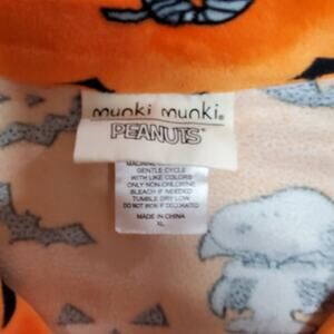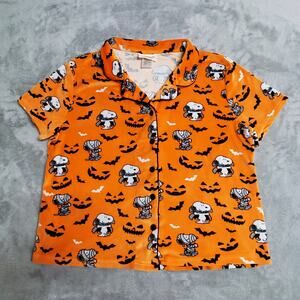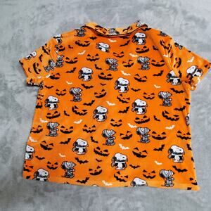 Munki Munki Peanuts Halloween PJ Top Womens XL Orange Snoopy Mummy Short Sleeve Button Up Front Fleece