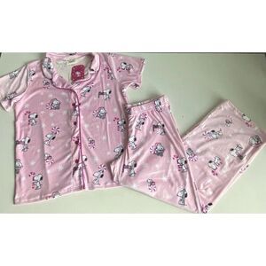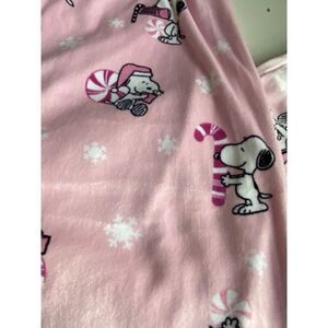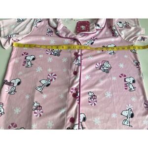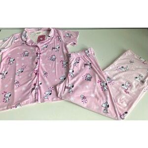 2 Pc Munki Munki Peanuts Snoopy Velvet Pajama Set Christmas Candy Cane Pink Women’s Sz XL Pants Short Sleeve Collared Button Holiday NEW