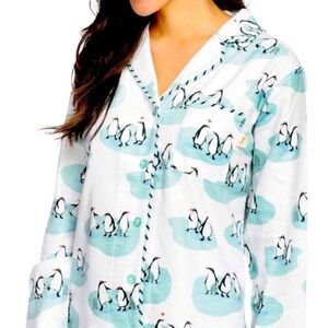Munki Munki Penguin Print Pajama Top Soft Flannel Bamboo/Cotton , size XL