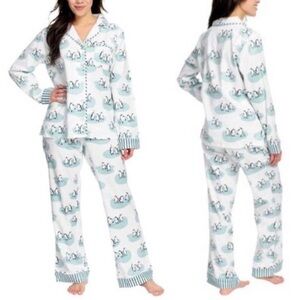 Munki Munki Penguins in Love super soft Flannel Pajama Set size S NWT