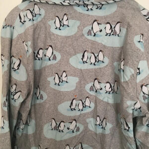 Munki Munki penguin novelty print flannel pajama top, size XL. This top is thick and very soft (as well as cute!!). There is a breast pocket snd banded cuffs. There are no holes, rips or stains.