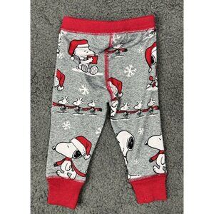 Munki Unisex 9m Peanuts Santa Snoopy Woodstock Baby Pajama Set Red Grey 9 M