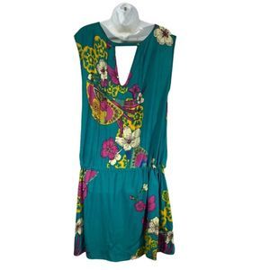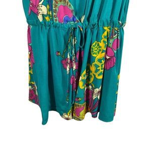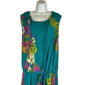 Munny Plus Size 14 Dress Tunic Teal Floral Drop Drawstring Waist Sleeveless