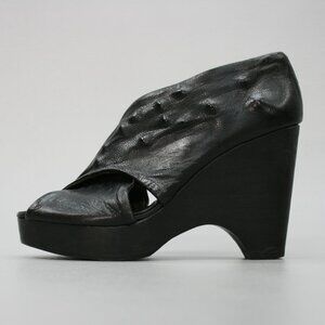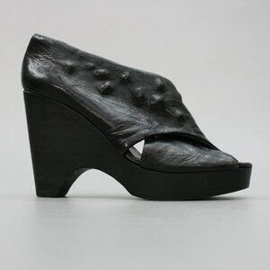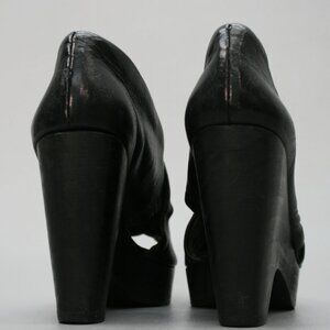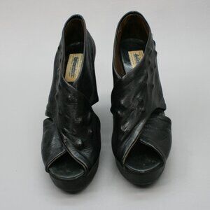 Munoz Vrandecic Ladies 39 (8.5) Black Leather Wood Platform 4.25" Heels Shoes A