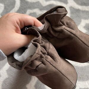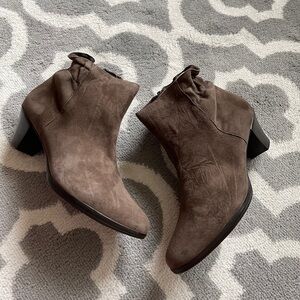 Munro Alfie Bootie Brown Suede Ruched Almond Toe
