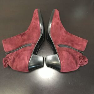 These stylish Munro ALFIE booties in a beautiful red wine burgundy suede material features a low block heel and side zipper closure. The almond toe shape and solid pattern add a touch of sophistication, while the zipper accents add a trendy look. Designed for women with a US shoe size of 10.5 and a shoe width of W, these booties are both comfortable and stylish. Made with high-quality suede material these Munro ALFIE booties are a must-have for any fashion-forward wardrobe. Some scuffs/wear on the suede, but overall in good condition. Please consider bundling for the best deal. Thank you for shopping.
