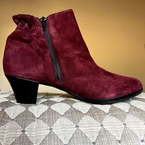 Munro Alfie Burgundy Red Suede Low Block Heel Booties Side Zipper Women 10.5 W