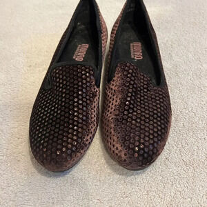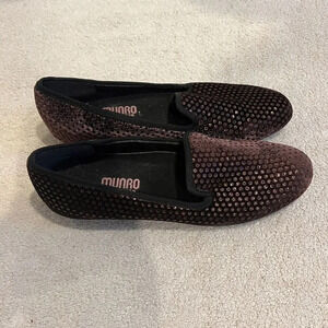 Munro American Ballet Flats 7.5 Loafer Slipper Purple Brown Velvet Sequin Jerrie