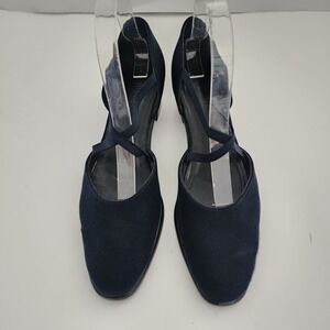 Munro American Blue Slip on Mary Janes criss-cross strapy block heel size 8.5