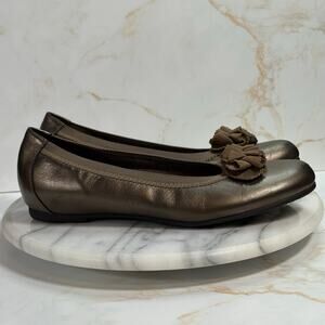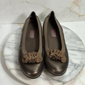 Munro American Bronze Leather Flats Women’s 8N USA Made Slip On Ruffle Toe