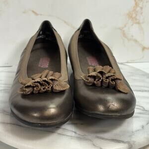 Munro shoes, bronze flats, narrow width shoes, USA made flats, comfortable slip-on, dressy ballet flats, ruffle shoes, orthopedic flats, casual work flats