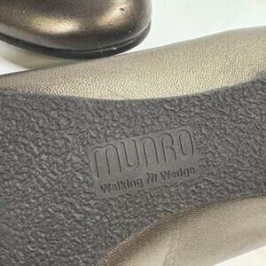 Elevate your everyday look with these Munro American flats in a sleek bronze tone. Made in the USA, these leather slip-ons offer comfort and understated elegance with a unique ruffle detail at the toe. A narrow width (8N) ensures a snug, refined fit perfect for casual to dressy settings.