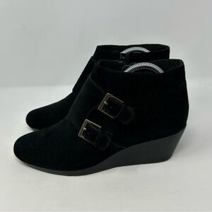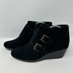 Munro American Drew Monk 2 Strap Black Suede Wedge Ankle Boots Size 11