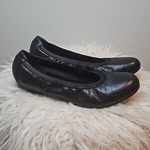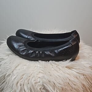 Munro American Perforated Black Leather Slip on Ballet Flats