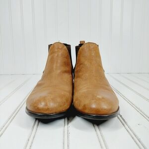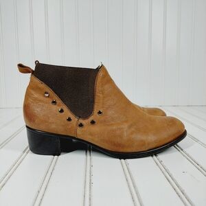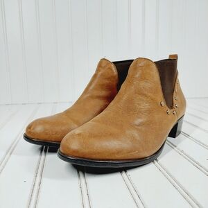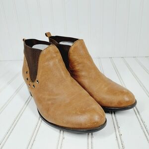 Munro American Tan Brown Studded Leather Elastic Gore Block Heel Ankle Boot C721