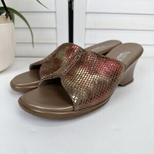 Munro American Walking Wedge Slide Sandal Iridescent Snake Comfort Shoe Size 8N