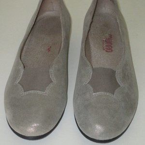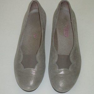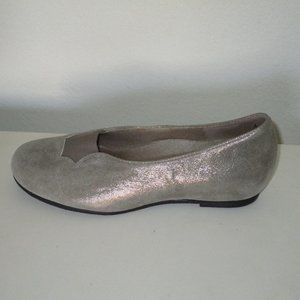 Munro American Womens Taupe Shimmer Ballet Flat. Size 6W. Made in the U.S.A. Previously owned but barely used, uppers & interiors are in excellent condition, while the rubber soles & heels reveal zero usage at all.