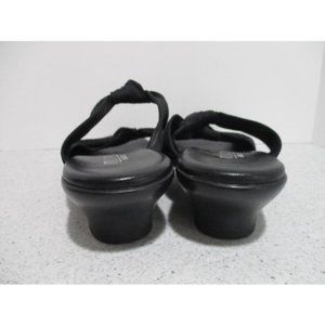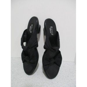 MUNRO American Black Twisted Knotted Fabric Slip-on Slide Sandals. Size 8-1/2. Rubber soles. 1-1/2 inch thick heels. Signature insoles. All measurements are approximate. S6-1