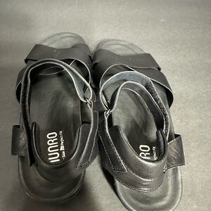 Munro Black Leather Sandals size 9.5 pre owned Exellent condition.