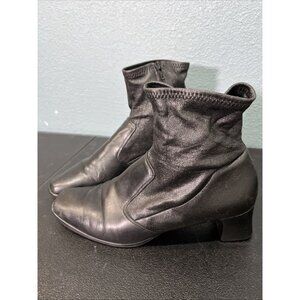 Munro Boots Womens 9M Black Leather Sock Pull On Booties Block Heel Grunge 90s