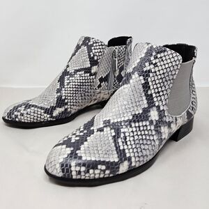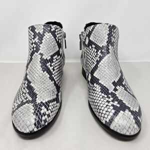 Munro Cate Womens Gray-Ivory Leather Snake Embossed Ankle Boots Sz 7M low Heel