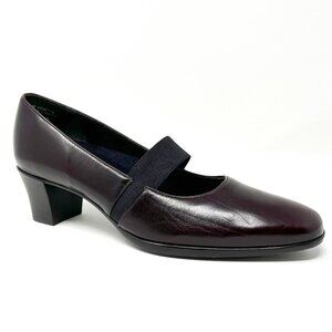 Munro Danielle Leather Pump. Chunky Low Block Heels. Dark Brown. Size 8