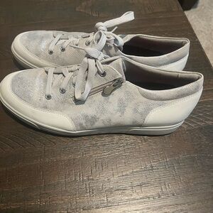 Munro Gabbie Sneakers Women's 11M White Metallic Printed Leather Side-Zip Shoes