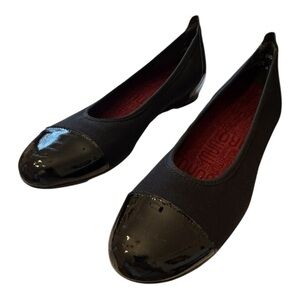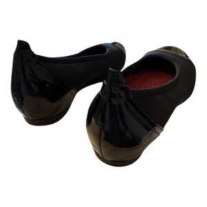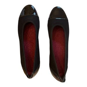 Fabric uppers with patent heel and toe caps. Easy slip-on design with an elasticized topline. Breathable and moisture-wicking fabric linings. Features a removable, fully-cushioned and contoured footbed for all-day comfort and support. Offers a hidden wedge for added height. Durable rubber outsole offers traction and stability.