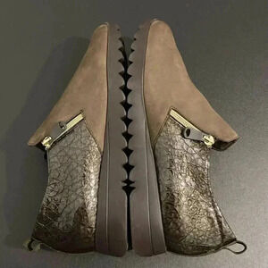 Munro Kit Loafers Size 10 Wide in Soft Brown Leather & Embossed Patent Leather