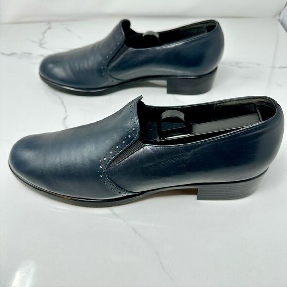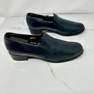 Nice looking loafers from Munro. They are a 8.5 narrow and feature a rounded toe with clean simple lines, only a line of perforation around the tongue adorns them. They are in excellent condition.
