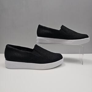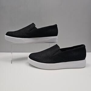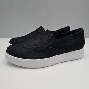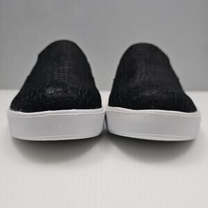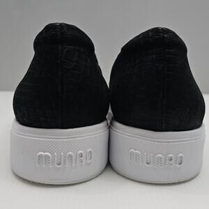 Munro Lennox Sneaker Womens 9 WIDE Black Nubuck Croc Embossed Slip On Platform