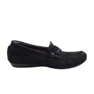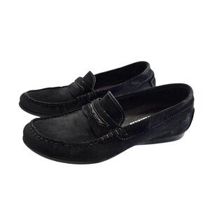 Munro Ramie Black Suede Penny Loafers Sz 6.5